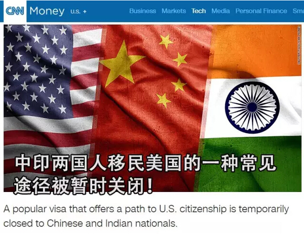美国有线电视新闻网财经频道(CNN Money)近报道,一种颇受欢迎的移民途径已经暂时对中国人和印度人关闭!新规定所涉及的签证叫做EB-1签证。对该签证暂停受理的规定于8月1日生效。该签证凸显了美国已经过时的移民系统需要增加透明度。
